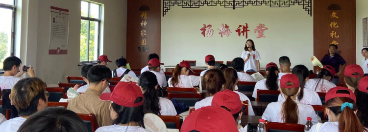 实践团队到达下蒋坞村正值中午十二点,炎炎烈日未能减少同学们乡村实践的热情。稍作休息后,团队进入下蒋坞村文化礼堂,在杨梅讲堂开启了本次实践的第一站——乡间思政课。