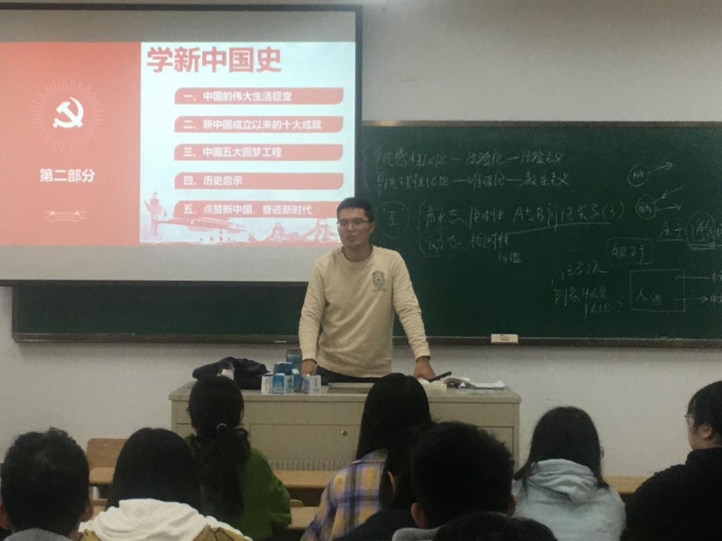 11月2日,马克思主义学院朱国华老师在9-312教室作“学四史、践初心、 担使命”宣讲报告,2019级应用统计学专业学生参加主题宣讲会。