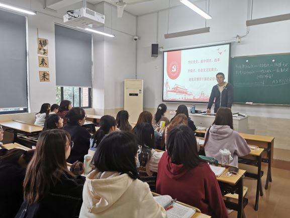11月3日,马克思主义学院朱国华老师在6-208教室作“学四史、践初心、 担使命”宣讲报告,外语系学生参加主题宣讲会。