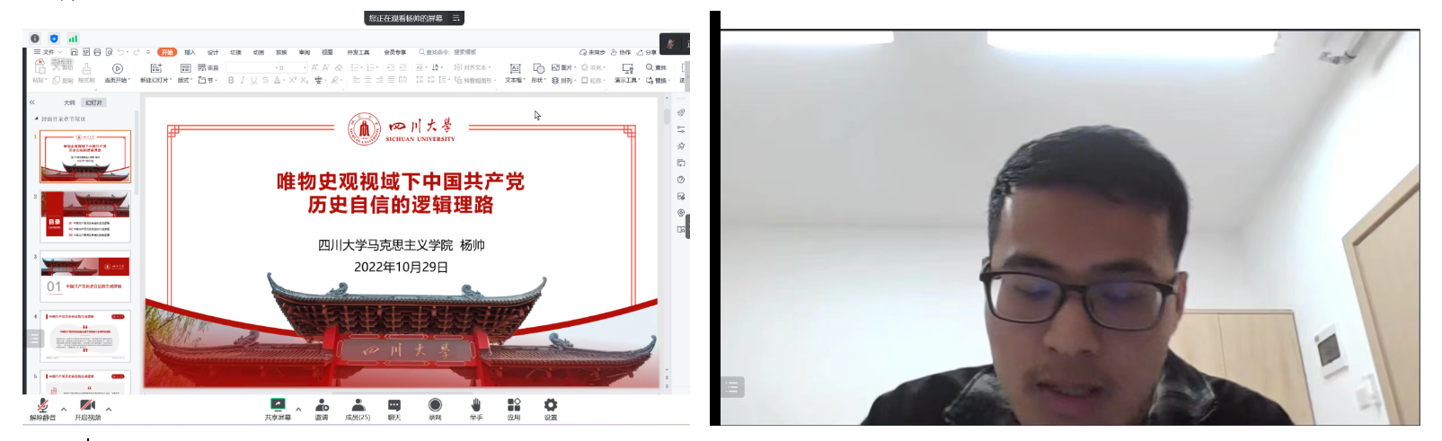 四川大学杨帅博士作了题为《唯物史观意蕴下中国共产党历史自信的逻辑理路》的主题报告。他深入分析了中国共产党历史自信的生成逻辑,推演了中国共产党历史自信的价值逻辑,解析了这一逻辑所蕴含的为了人民、服务人民、增进人民福祉的基本内涵。