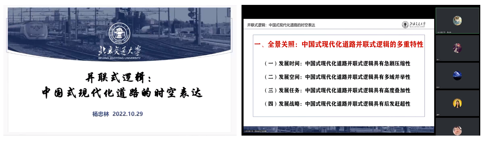 北京交通大学杨忠林作了题为《并联式逻辑:中国式现代化道路的时空表达》的主题报告。他系统地解释了中国式现代化道路并联式逻辑的多重性,展望了中国式现代化道路并联式逻辑的多重进路。