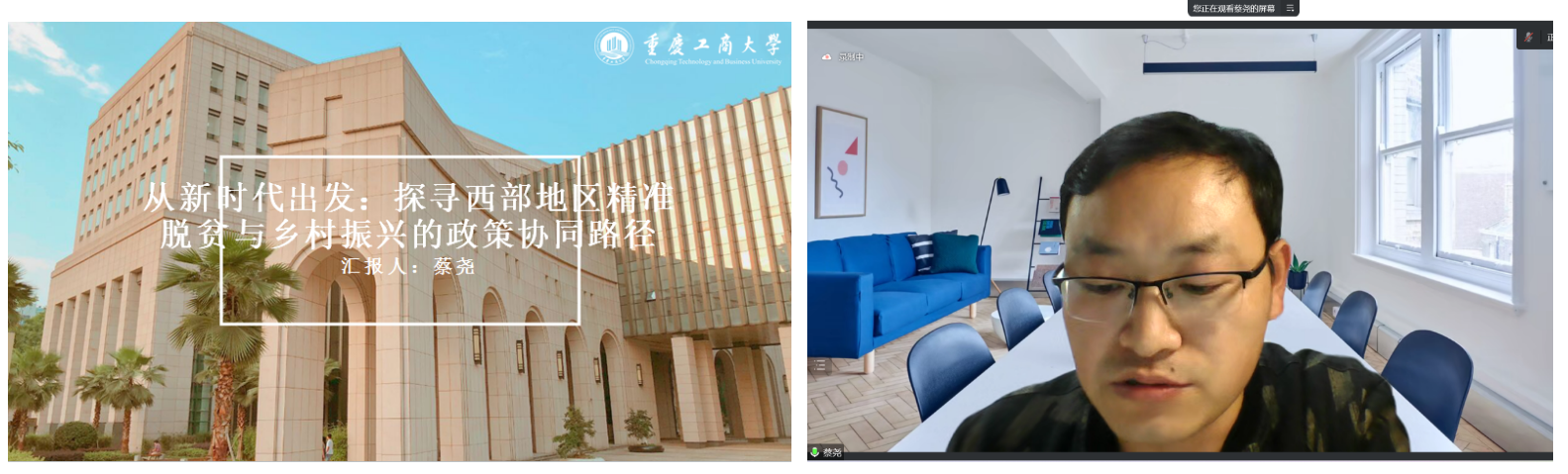 重庆工商大学蔡尧作了题为《从新时代出发:探寻西部地区精准脱贫与乡村振兴的政策协同路径》的主题报告。他指出在新时代下要以脱贫攻坚示范区的优秀示例为基准,从中探寻脱贫致富、乡村振兴的政策经验,以此改变相对西部地区的现状,切实做好精准脱贫工作同乡村振兴战略的政策协同,从而推动西部地区有温度、有力度的发展。