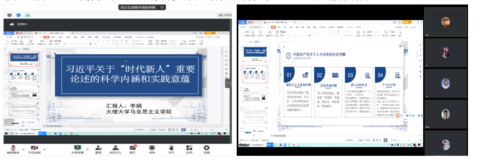 大理大学马克思主义学院李娟作了题为《习近平关于“时代新人”重要论述的科学内涵与实践意蕴》的主题报告。她就习近平总书记讲话中有关“培养时代新人”的问题提出自己的看法,她指出作为担当民族复兴的时代新人应该具有爱国爱民、锤炼品德、勇于创新、实学实干的基本特质。