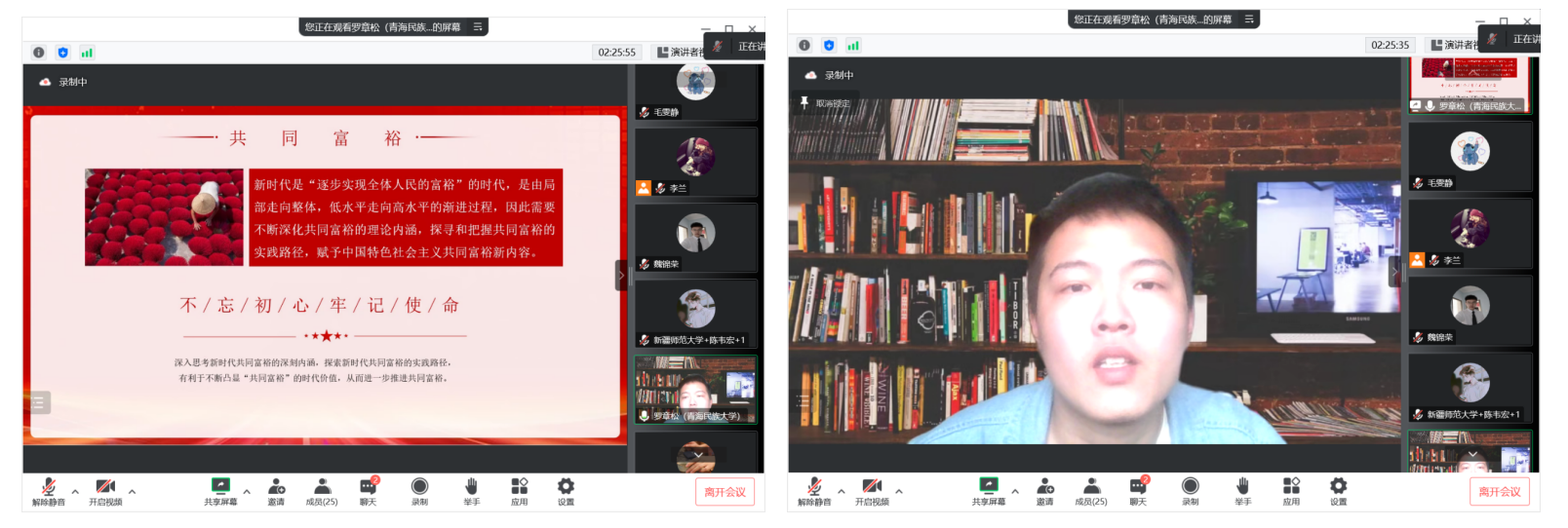 青海民族大学马克思主义学院罗章松作了题为《新时代共同富裕的理论阐释和实践路径研究》的主题报告。他从共同富裕的伟大探索、新时代共同富裕的理论出发,提出新时代共同富裕的实践路径,统筹“两个大局”,在党的领导下实现人民的物质富裕与精神富裕。