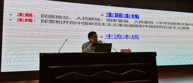 4月26日下午,在图书馆报告厅,我校有幸邀请到嘉兴学院红船精神研究中心孙宝根教授为我校师生开展了关于《红船精神与中国共产党人的初心和使命》的主题讲座。讲座由思政教师李宛荫主持,马克思主义学院教师参加了此次讲座。