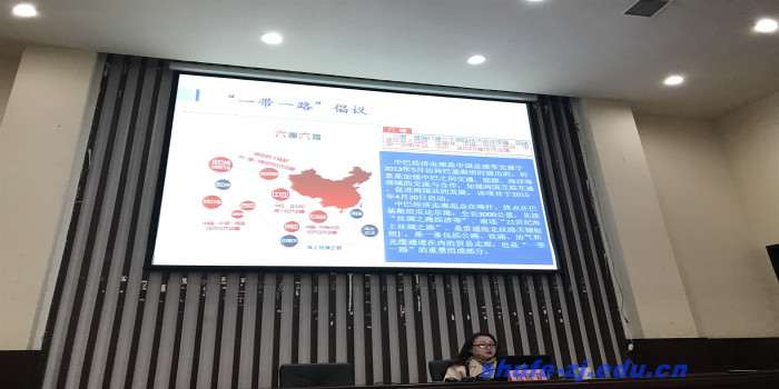 讲座正式开始后,刘晓音博士从“一带一路”的历史渊源和内涵、建设和发展、取得的成果、“一带一路”与人类命运共同体的建构这四个方面阐述了“一带一路”倡议,并结合实际案例和自身学习、工作经历,通过对大量数据、图表的分析,让大家更加深入、全面的学习了“一带一路”倡议。刘晓音博士指出,“一带一路”倡议来自中国,但成效惠及世界,是沿线国家之间交流合作的平台,彰显了同舟共济、权责共担的命运共同体意识,成为我国参与全球开放合作、改善全球经济治理体系、促进全球共同发展繁荣、推动构建人类命运共同体的中国方案。最后,刘晓音博士以“‘一带一路’让世界政治互信、经济融合、文化包容”作为本次讲座的总结语,并赢得了师生们阵阵掌声。