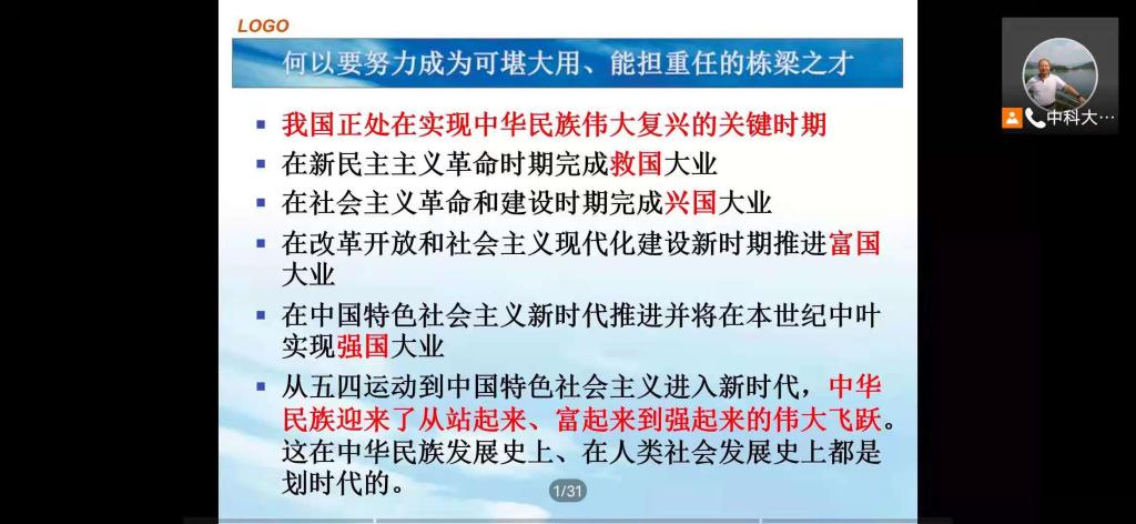 吴兆雪教授指出,我国正处在实现中华民族伟大复兴的关键时期。在新民主主义革命时期完成救国大业,在社会主义革命和建设时期完成兴国大业,在改革开放和社会主义现代化建设新时期推进富国大业,在中国特色社会主义新时代推进并将在本世纪中叶实现强国大业。他认为,从五四运动到中国特色社会主义进入新时代,中华民族迎来了从站起来、富起来到强起来的伟大飞跃。这在中华民族发展史上、在人类社会发展史上都是划时代的。当前,世界百年未有之大变局加速演进,中华民族伟大复兴进入关键时期,我们面临的风险挑战明显增多,总想过太平日子、不想斗争是不切实际的。要丢掉幻想、勇于斗争,在原则问题上寸步不让、寸土不让,以前所未有的意志品质维护国家主权、安全、发展利益。共产党人任何时候都要有不信邪、不怕鬼、不当软骨头的风骨、气节、胆魄。