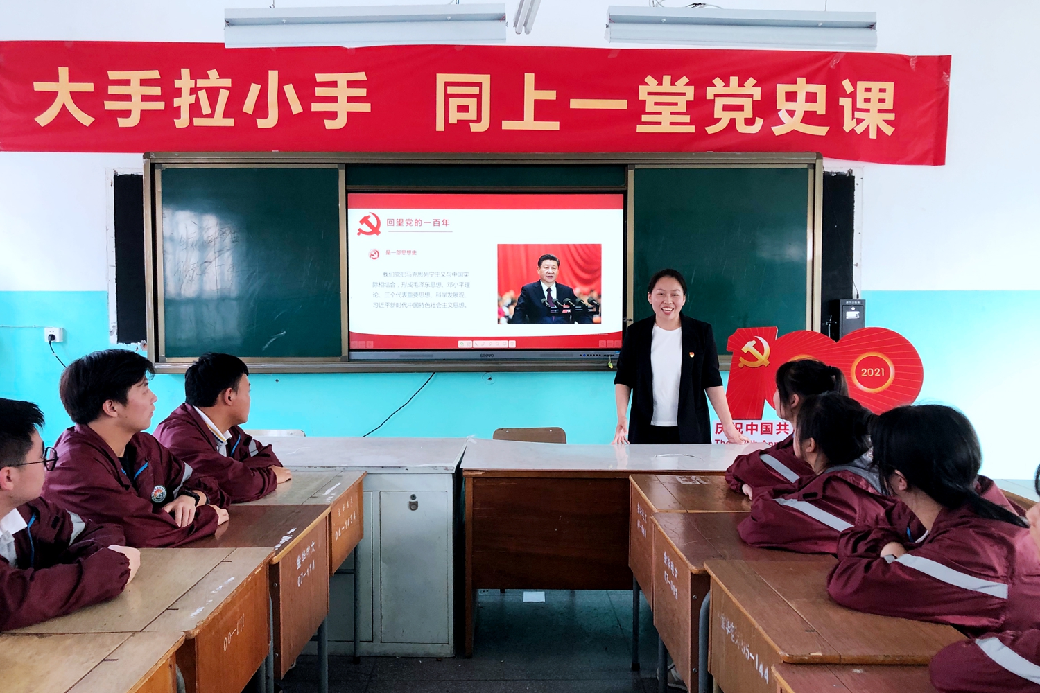 李菀荫老师以“回望党的历史,坚守初心使命”为题,带领党员、团员师生一起回顾了党的百年发展历程,共同追忆峥嵘岁月、感悟初心使命,强调了党史学习教育的途径和意义——只有把蕴含在百年党史中的思想悟深悟透,才能真正做到学史明理、学史增信、学史崇德、学史力行。