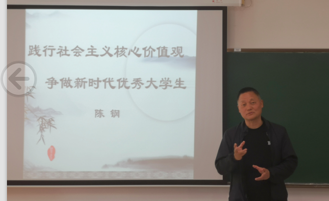 为进一步落实中共中央办公厅、国务院办公厅《关于深化新时代学校思想政治理论课改革创新的若干意见》和中共教育部党组关于《“新时代高校思想政治理论课创优行动”工作方案》的文件精神,上好新时代思想政治理论课,4月21日上午,学院党委委员、纪委书记陈钢在教学楼7幢305教室为19财务管理一班的同学们讲授思政课《践行社会主义核心价值观,争做新时代优秀大学生》。