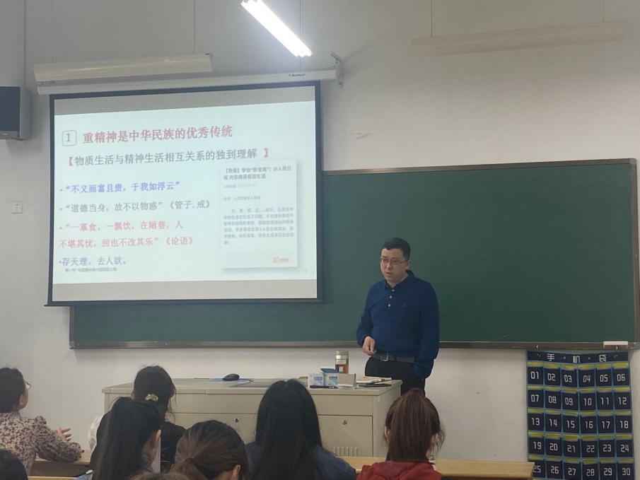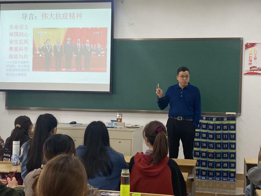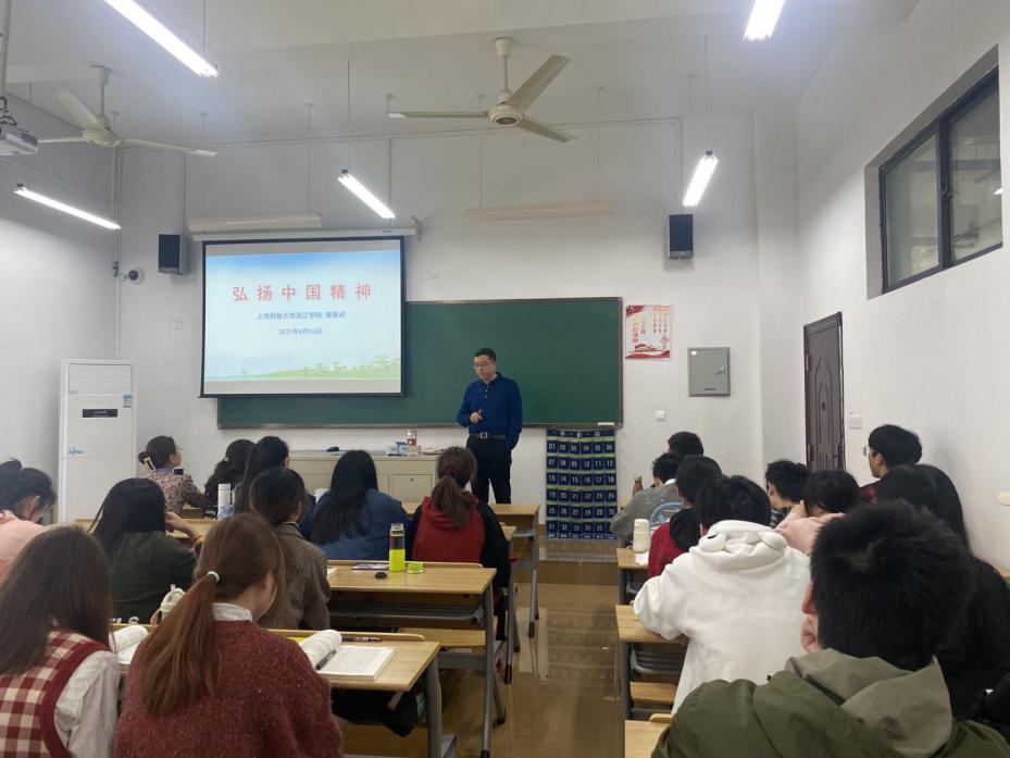4月16日上午,校党委委员、副院长曾惠成走进思政课堂,以“弘扬中国精神”为主题,为19级财务管理三班的同学们上了一堂生动形象的思政课。