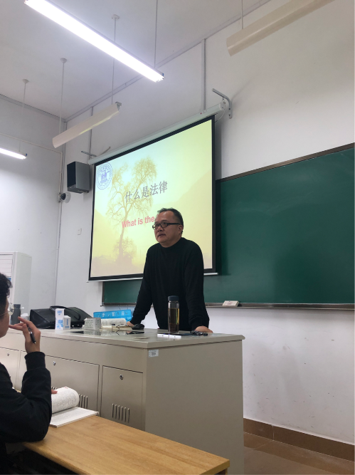 课堂中,马洪院长首先向同学们抛出问题:“你眼中的法是什么”?同学们各抒己见,有人认为,法是不能违背的底线;也有人认为,法律是一种活动准则和行为规范,是守规矩的表现;还有人说,法律对每个人来说都是平等的,这都充分体现了同学们对法的理解。马洪院长从同学们的回答中找到了新的思考点,问道:“难道法律仅仅是一种规则吗?那它与道德又有什么区别呢?是不是所有的规范都能算作是法律呢?”随后,马院长通过举例原始时代和古代家族的族规向大家介绍法律是一种需要承担责任的规范。接着,他通过让同学们思考“在古罗马奴隶是不是人”这一问题,引出自由人才需要法律,自由是法律的核心指向,而自由又分为主观能动性的充分发挥、利用客观规律支配劳动力和自主选择多种类型。