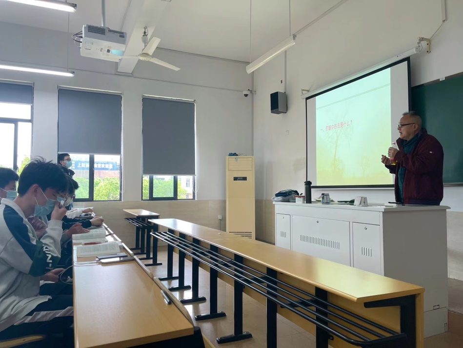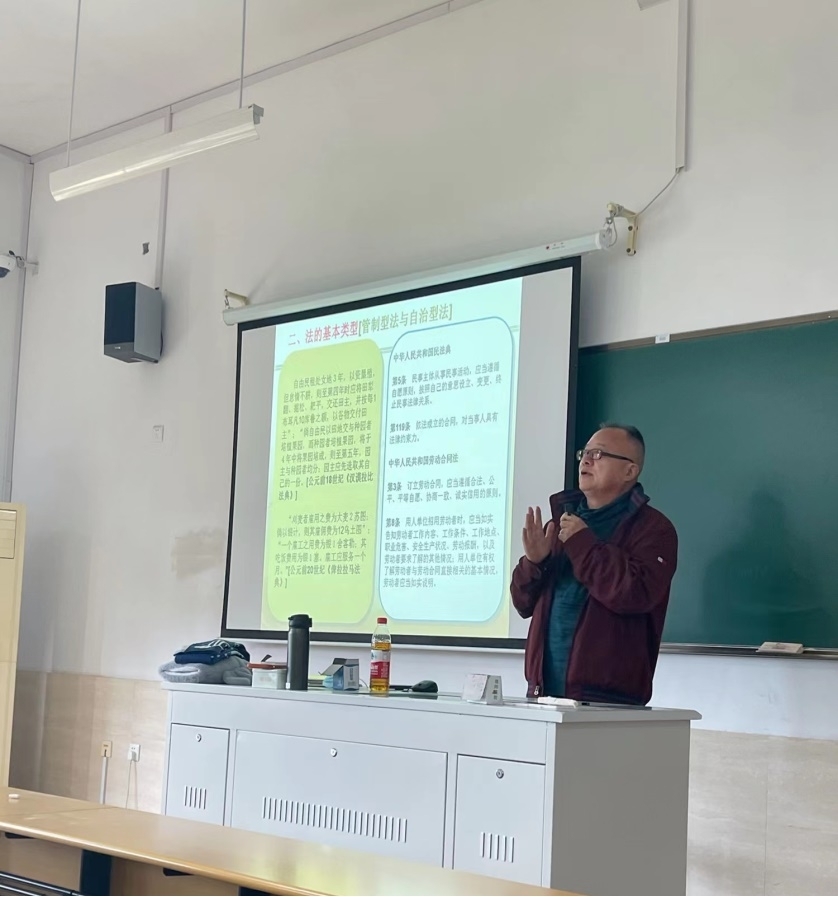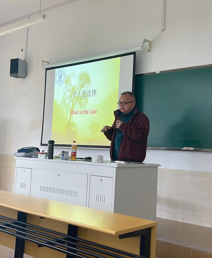 4月15日上午,院长马洪在学院7-213教室给21级电子商务一、二班的同学们讲了一堂以“什么是法律”为主题的思政课。