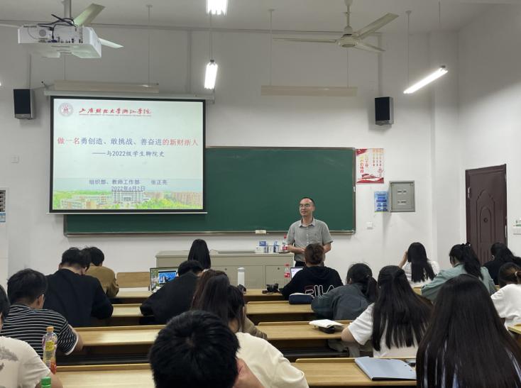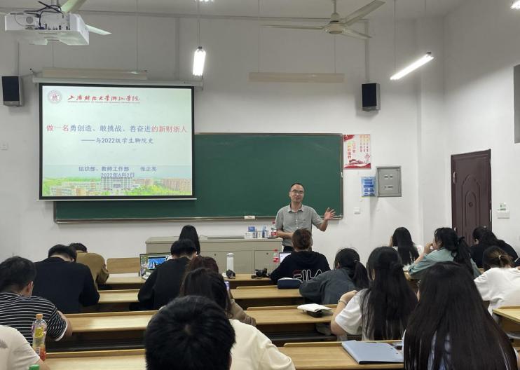 张部长从学院发展史切入,以幽默风趣的方式侃侃而谈。他指出,上财浙院筚路蓝缕、艰苦奋斗,十几载风雨兼程,春华秋实,一批又一批奋进向前的财浙学子从这里毕业,走向社会。上财浙院作为大家的母校,她有着不懈奋斗的足迹,有着催人奋进的历史,大家要善于从中吸取精神的力量,做一名勇创造、敢挑战、善奋进的新财浙人。
