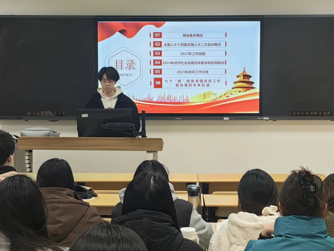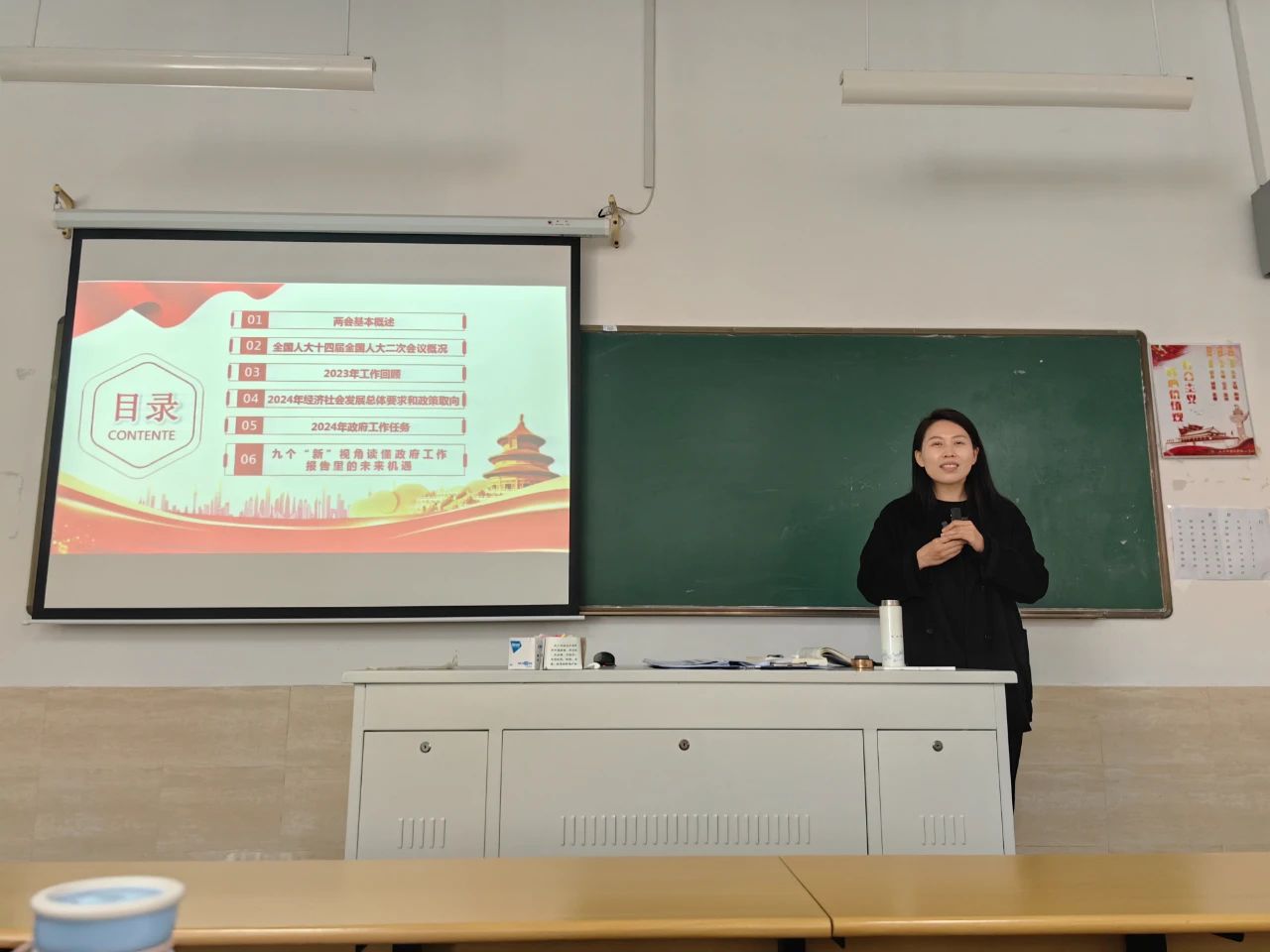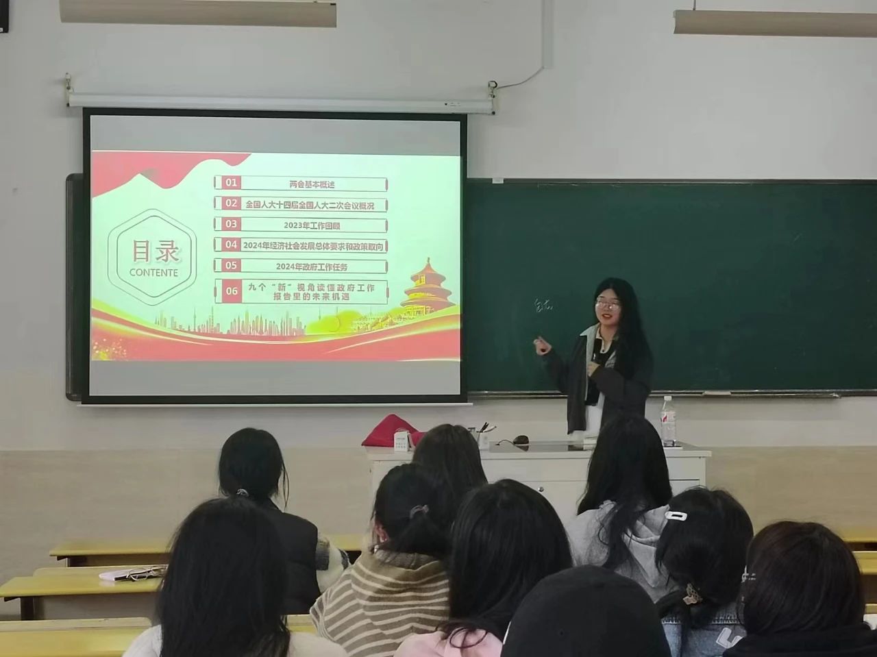 3月18日-3月21日,马克思主义学院组织思政教师在全校范围内开展2024年全国两会精神进课堂活动。