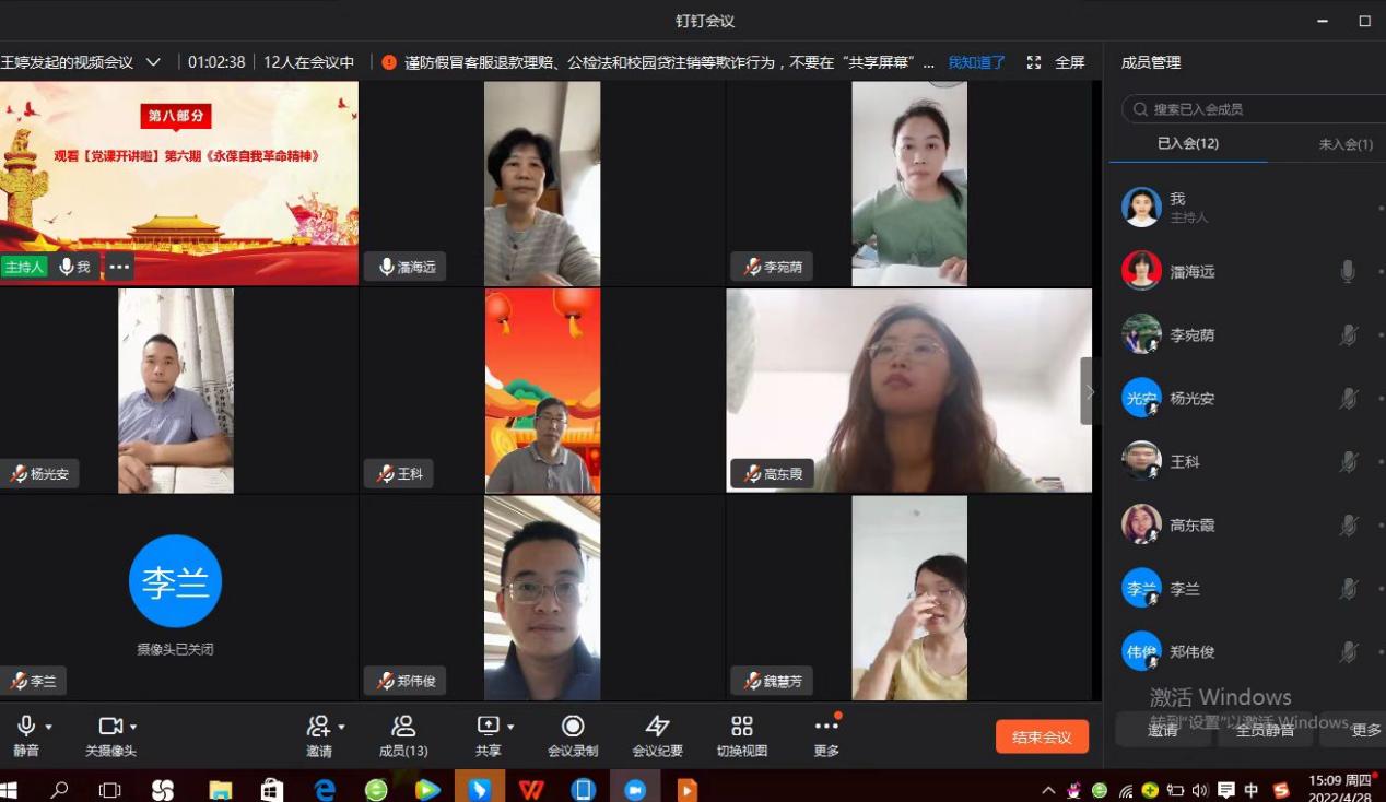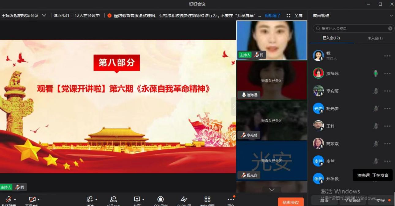4月28日下午,马克思主义学院直属党支部开展了月度主题党日活动,因疫情防控需要,以钉钉视频会议形式进行,支部全体党员及入党积极分子参加会议,会议由直属党支部副书记潘海远主持。