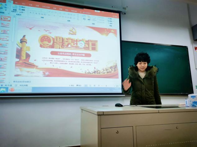 11月28日-12月2日,我院思政教师在马克思主义学院直属党支部的组织下,利用课堂时间发动大一、大二学生参与“宪法晨读”活动。宪法晨读活动以教师和学生代表领读、教学班全体学生跟读的方式进行。“宪法晨读”结束后,部分班级在任课教师的带领下学唱法治歌曲《宪法伴我们成长》。
