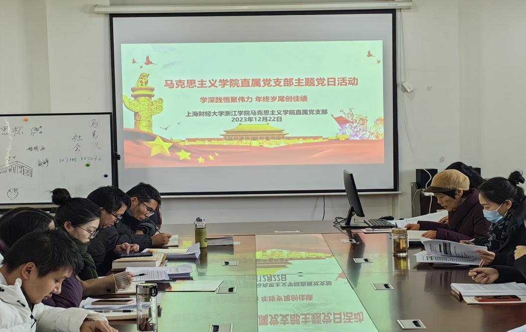 12月22日下午,马克思主义学院直属党支部在28幢420会议室开展了主题党日活动。活动主题是“学深践悟聚伟力 年终岁尾创佳绩”,支委王婷主持了本次主题党日活动。
