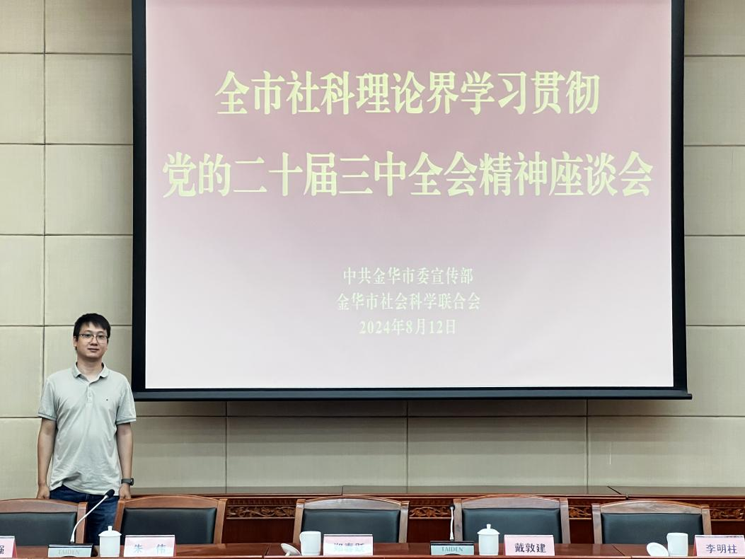 四是聚焦中国式现代化等问题,以学术交流、走进媒体的形式开展党的二十届三中全会精神宣讲解读活动。8月12日,陈伟良受邀参加了在市文化中心举行的全市社科理论界学习贯彻党的二十届三中全会精神座谈会。在座谈会上,陈伟良围绕党的二十届三中全会关于文化建设的相关内容,结合中国式现代化进程中不断深化文化体制机制改革问题作交流发言,并以《在中国式现代化进程中不断深化文化体制机制改革——深入学习宣传贯彻党的二十届三中全会精神》为题积极参加金华日报理论周刊、金彩云、潮新闻《社科视窗》“学习贯彻党的二十届三中全会精神”专版(专栏)征文活动。