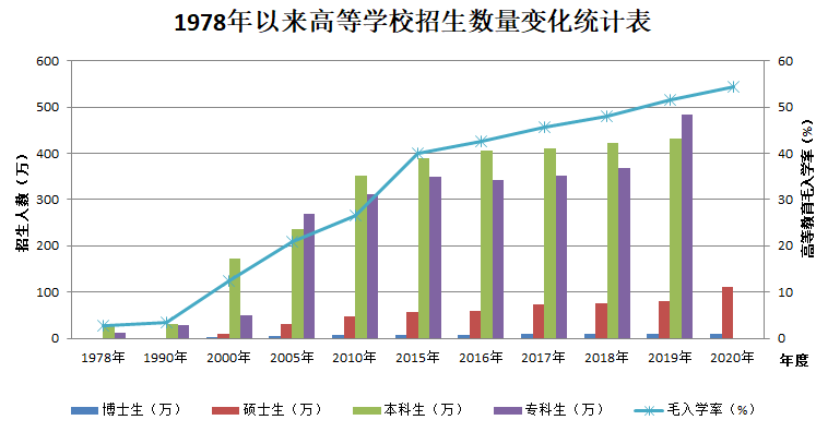图1 1978年以来高等学校招生数量变化统计表
